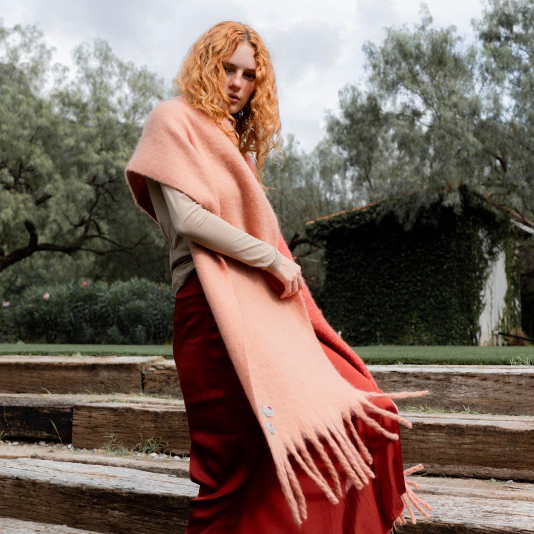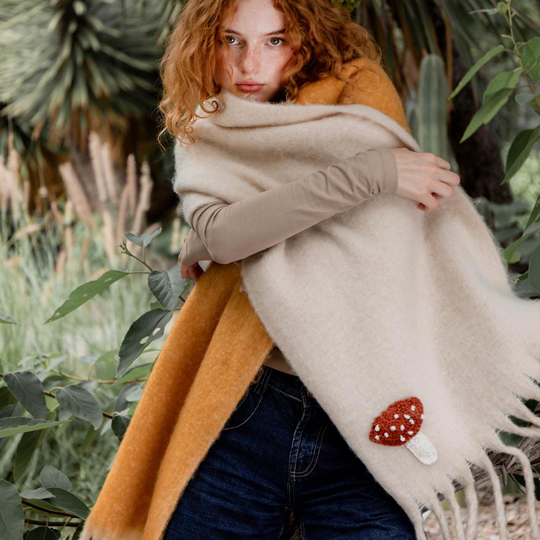 Our luxe oversized wrap will keep you ultra-cozy throughout the season. Featuring delicate hand-embroidered details that make every piece one of a kind. Perfect for layering, gifting, and making chilly days way cuter.